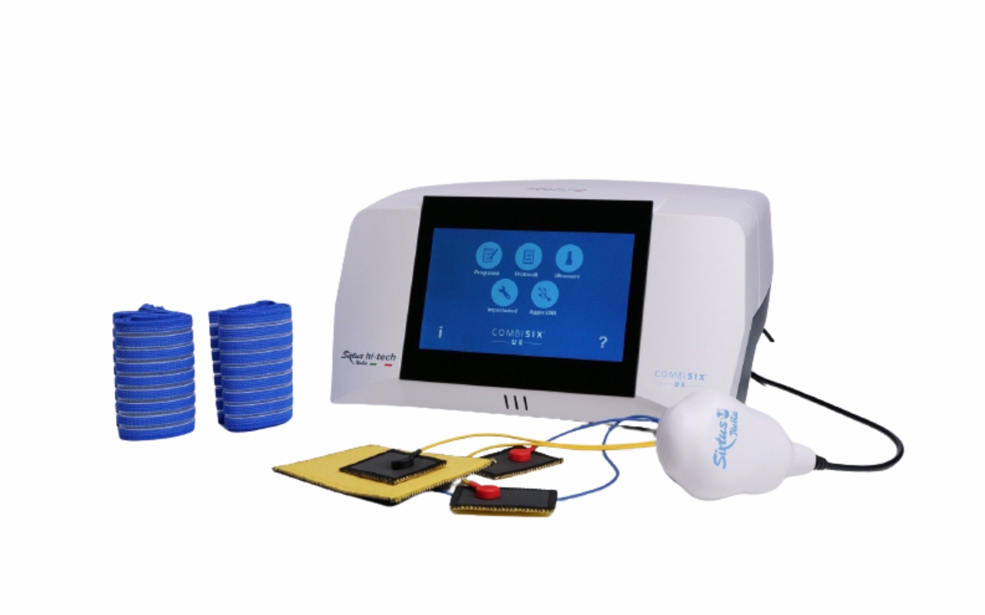 Combisix UE on kannettava ultraäänihoitolaite, jossa on taajuuksia 1, 2, 3 MHz, yhdistettynä kahden kanavan sähköhoitoon.