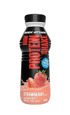 High Protein Shake Body Attackista on ihanteellinen lihasmassan lisäämiseen, sisältäen 50g proteiinia/500ml