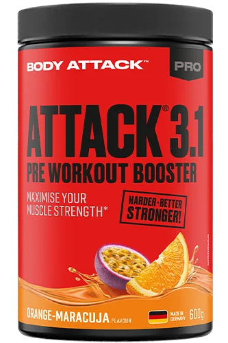 Kuten nimi viittaa, Pre-Attack 3.1 on ennen treeniä otettava tehosteaine. Ota mittalusikallinen jauhetta noin 60 minuuttia ennen treeniä optimoidaksesi treenikokemuksen ja lisätäksesi kehon suorituskykyä voimaharjoittelun aikana*