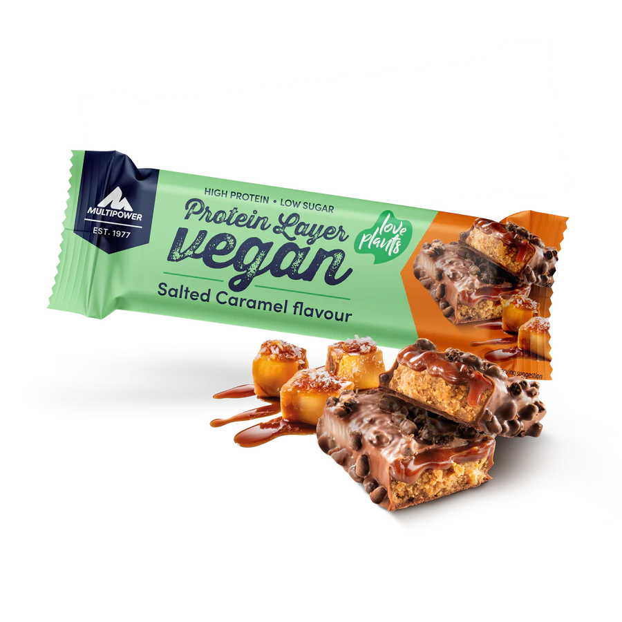 Vegaaniset Protein Layer -proteiinipatukat on valmistettu ainutlaatuisesta soija-, riisi- ja herneproteiiniseoksesta. Alle 1 g sokeria ja 216 kcal ne ovat ihanteellisia kuntoiluvälipaloja harjoituksen jälkeen tai aterioiden välillä. Ne tarjoavat herkullista makua ja tukevat lihaskasvua ja painonpudotusta täyttämällä päivittäisen proteiinitarpeesi.