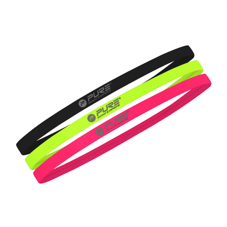 Päähihnat, setti 3 kpl musta, neonpinkkiä ja neongeeliä.