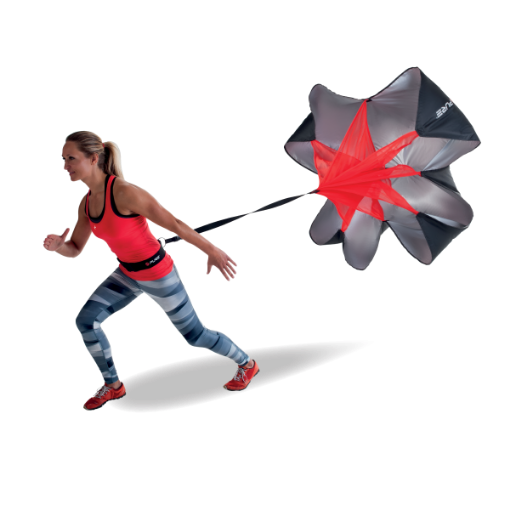 Harjoituspilvi, kestävä ja erityisesti nopeuden kehittämisharjoituksiin suunniteltu. Siinä on vyöjärjestelmä, joka kiinnitetään vyötärölle.